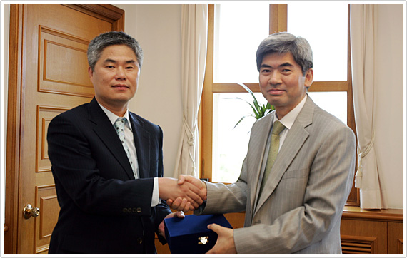 계명대 이진우 총장은 이러한 석송 이종호 후원회의 취지와 노력에 보답하는 뜻으로 감사패를 전달하고 환담을 나눴다.