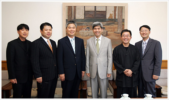 이번 행사를 위해 계명대를 방문한 석송 이종호 후원회 윤완묵(밸류디벨럽먼트 사장)회장, 이종호, 양균열(하나로유통 사장), 김은석(D&L 사장)씨 등 후원회 관계자 4명이 참석, 서예과 학생들을 위해 매년 500만원씩 5년간 총 2천 5백만원의 장학금을 기부하기로 약정했다.