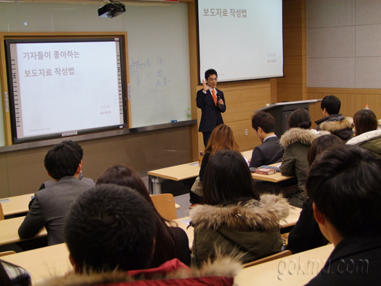 이상훈 편집국장은 논리적인 글쓰기의 일환으로 신문 기사 작성의 일반원칙 및 유의점과 사실보도기사의 기본 형태에 대해 설명하며 학생들과 질의응답 시간을 가졌다.