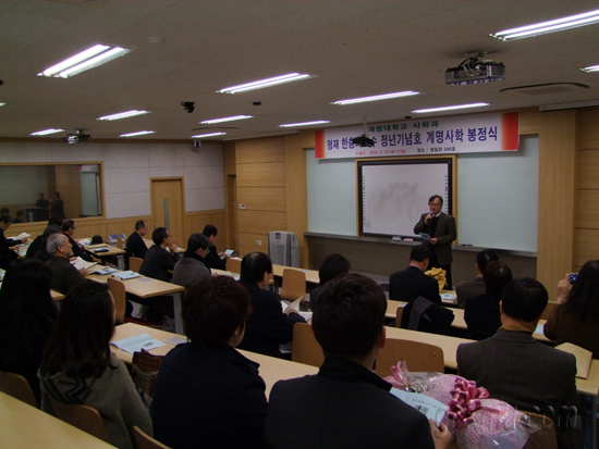 지난 21일 인문대학 사학과 주최로 ‘명재 한충희 교수 정년 기념호 (23집)봉정식’이 영암관 240호에서 진행됐다. 이날 행사는 명재 한충희 교수의 정년퇴임을 축하하고자 열렸으며 축사에서 이중희(회계학·교수) 교무부총장은 “후배와 제자를 아낌없이 사랑해주고 도와주신 한충희 교수님께 항상 후배로써 감사하게 생각한다”고 말했다.