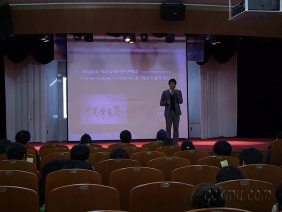 이번 행사는 ‘빛나라 내 청춘아’라는 주제로 열렸으며, 행사를 참여한 KMU창업동아리 회장 강민성(환경과학·3)씨는 “학생들이 다른 사람들의 경험담을 통해 간접경험을 하는 시간이 되었으면 한다”며 “앞으로 열릴 강의도 많은 기대를 부탁한다”고 말했다.