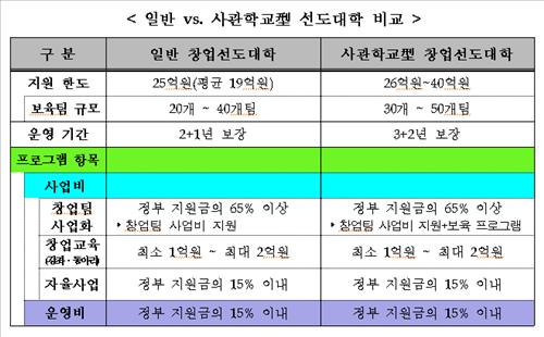 올해 창업선도대학으로 선정되지 못한 기관은 3년 동안 매년 5개 내외로 선정해 권역별 우수 창업보육 모델로 만들 계획이다.