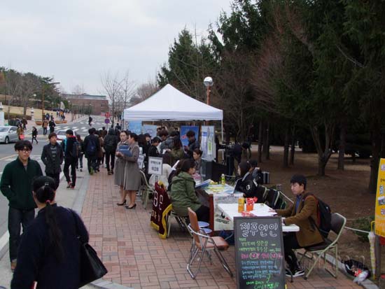 지난 3월 11일부터 15일까지 총 5일간 우리학교 성서캠 바우어관 일대에서 총동아리연합회가 주최하는 2013학년 1학기 가두모집이 실시되었다. 이번 가두모집에는 49개 정규동아리 및 3개 육성동아리, 1개 가등록동아리와 KMBS, 아리미, 이끄미, ACE사업단, ROTC 등이 참가했다.