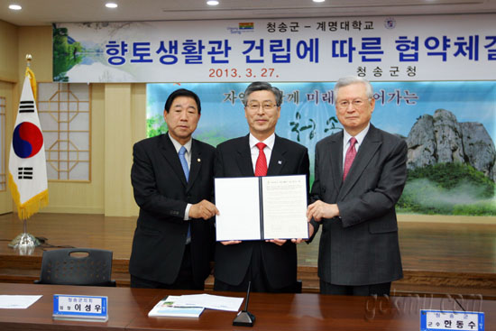 지난 27일 청송군청에서 우리학교와 청송군의 향토생활관 건립기금 출연 협약식이 열렸다. 이날 협약은 우리학교 향토생활관 건립 사업에 기금을 출연한 지방자치단체 출신 재학생들에게 기숙사를 제공함으로써 지역인재육성을 위한 관·학 협력체제 구축을 위해 맺게 됐다. 이번 협약에 따라 양측 기관은 향토생활비로 1억원을 출연하게 됐으며 올해 1학기부터 청송지역 학생 10명이 기숙사에 입사했다.