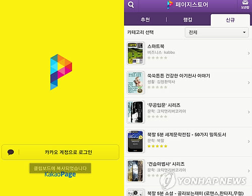 (서울=연합뉴스) 국민 메신저 '카카오톡'을 기반으로 한 모바일용 디지털 콘텐츠 유통 플랫폼 '카카오페이지'가 문을 열었다.