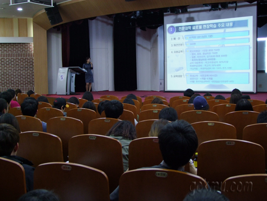 지난 4월 17일 바우어관 시청각실에서 ‘2013 정부해외인턴십 프로그램 순회 설명회’가 열렸다. 이번 설명회는 학생들 1백여명이 참석한 가운데 교육부 산하 국립 국제교육원 정준 선생이 설명을 맡아 학생들에게 해외인턴십 프로그램에 대해 설명해주었다. 또한 정부해외인턴사업 소개를 시작으로 각 사업별 설명회, 정부해외인턴 수료자 발표회, 상담 순으로 진행했다.