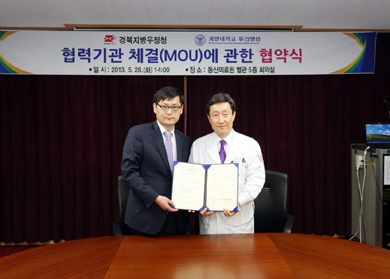지난 5월 28일 동산의료원 별관 5층 회의실에서 ‘동산의료원과 경북지방우정청 MOU 협약식’이 열렸다.