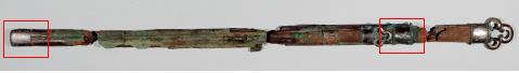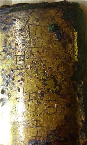 글자는 칼 끝부분을 장식하는 금속(금동) 부분에서 선으로 그려넣었다.