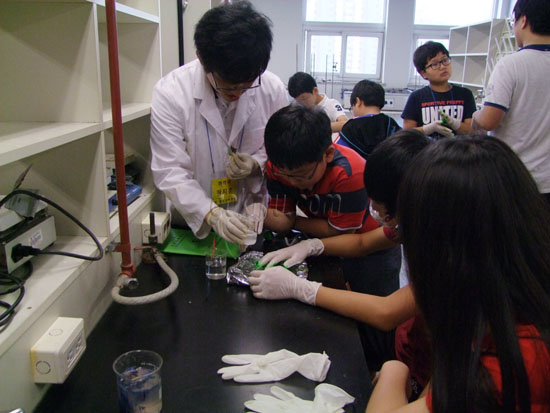 캠프에는 총 52명의 학생이 참가했으며, ‘채소의 색 변화 관찰’, ‘화학의 마술’, ‘실험동물의 이해’ 등 이론과 실습 병행하는 프로그램으로 진행했다.