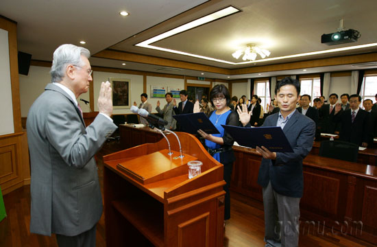 지난 7일 본관 제2회의실에서 신일희 총장을 비롯한 전임입학사정관, 위촉입학사정관, 입시 주요 관계자 60명이 참석한 가운데 ‘윤리강령 선포식’이 열렸다.