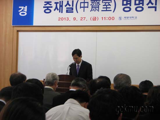 한편 이번 명명은, 우리학교에서 17년 동안 한문교육과와 학교 발전에 크게 기여했을 뿐만 아니라 학자와 스승으로서 모범이 되는 중재 이원주 교수의 공적을 오래도록 기리고자 하는 취지로 마련됐다.
