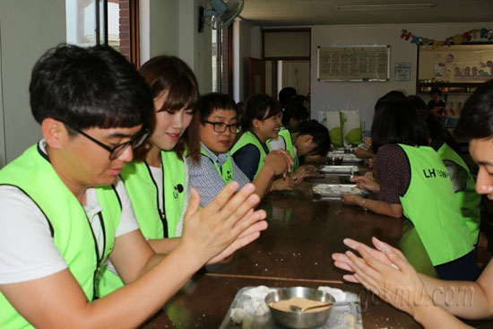 LH에서 근무하시는 직원 분들께서 매년 추석을 맞아 영생애육원 아이들을 위한 송편 만들기 활동을 했습니다. 올해엔 멘꼬 봉사단도 함께 하자고 하셔서 참가하게 되었죠. 또한 아이들을 위해 만든 송편과 저희가 농촌체험활동에서 수확한 고구마, 감자 등도 함께 기증했습니다.