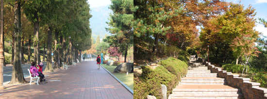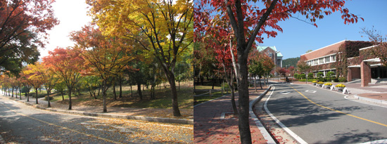 ● 7코스의 영암관 앞의 통일의 광장에서 만난 중국인 교환학생 황탁문(한국문화정보학·2) 씨는 “단풍나무의 색깔과 건물의 색이 잘 어울려서 학교가 너무 아름답다”고 하며 “앞으로도 이 거리를 자주 걸어볼 예정이다”라고 전했다. 통일의 광장 산책로는 10여분이 소요되며 벤치도 구비되어 있어 산책과 휴식을 할 수 있는 공간이다.이제까지 우리 학교의 산책길을 알아보았다. 산책로를 통하여 취업과 과제에 시달리는 우리 학생들, 안식을 취해보자. 또한 원래 알고 있었지만 새롭게 알게 된 산책로가 있다면 공강시간을 통해 가벼운 산책을 해보는 것이 어떨까?