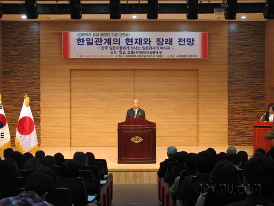 또한 벳쇼 코로 대사는 “지금 한국과 일본은 영토, 역사문제로 어려움을 겪고 있지만 역사의 통절한 반성을 바탕으로 미래지향적인 협력관계를 도모하도록 전력을 다할 것이며 더불어 젊은 시대의 지원도 부탁한다”고 밝혔다.