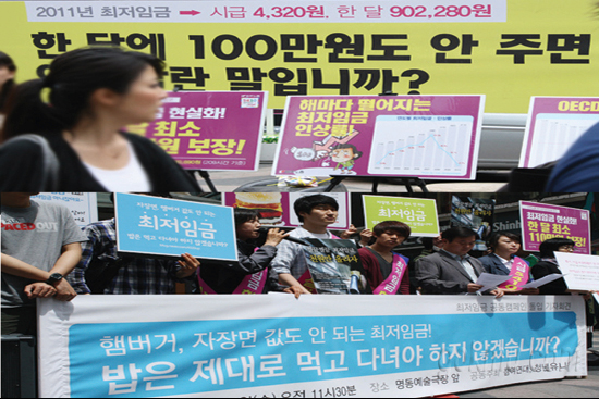 전국적인 통계자료 또한 마찬가지 결론을 보여준다. 통계청의 2012년 8월 「경제활동인구 부가조사」에 따르면, 29세 이하 임금노동자 358만 6천 명 중, 최저임금조차 받지 못하는 청년은 38만 명으로 전체의 10%를 넘어서는 열악한 상황이다.