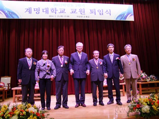 이날 교원 퇴임식에는 심호택(한문교육·교수·33년 5개월 근속) 교수, 김영철(건축학·교수·27년 6개월 근속) 교수, 전진석(생물학·교수·32년 근속) 교수, 최만기(경영학·교수·26년 6개월 근속) 교수, 박미경(작곡·교수·28년 근속) 교수, 김혁일(식품가공학·교수·23년 근속) 교수, 박우현(의학·교수·33년 근속) 교수, 김진모(의학·교수·29년 근속) 교수가 정년을 맞았고, 이영기(성악·교수·30년 5개월 근속)교수, 이상덕(법학·교수·23년 6개월 근속)교수가 명예퇴직을 했다.
