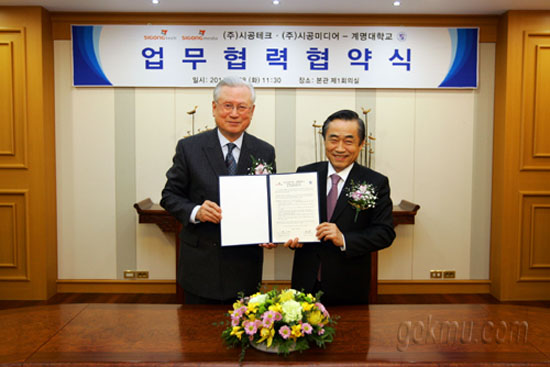 지난 1월 28일 본관 회의실에서 우리학교와 ㈜시공테크가 산학협력 체결식을 가졌다. 이번 협약은 두 기관이 인력, 시설, 정보 등의 상호 교류 및 협력을 통해 지역 문화산업 발전에 기여함을 목적으로 체결됐다.