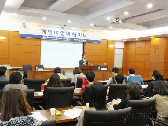 조주현(여성학·교수) 여성학연구소장은 “계명여성학세미나는 페미니스트 정치학의 미래를 주제로 진행된다”라고 말했다. 이날 강연을 맡은 석재은(한림대·사회복지학·교수) 교수는 한국 공적연금의 세대 간 이전의 공평성과 연금개혁 방안에 대해 이야기했다.