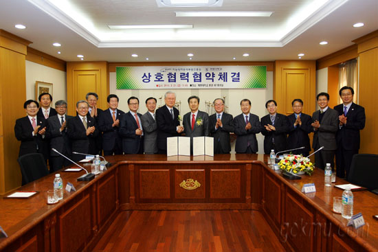 우리학교와 (재)지능형자동차부품진흥원과의 상호협력 협약식이 지난 21일 본관 제1회의실에서 열렸다. 이날 체결식에는 우리학교 신일희 총장, (재)지능형자동차부품진흥원 이충곤 이사장 등이 참석한 가운데 기계자동차관련 졸업생들의 취업 협력, 자동차 관련 연구 및 제품개발 공동수행 등에 양 기관이 상호 협력하기로 했다.