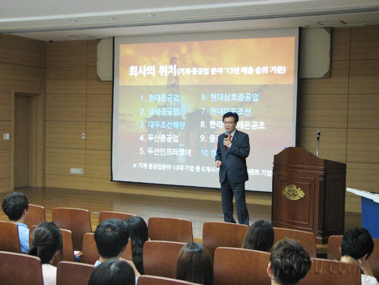 이날 김종우 상무는 삼성중공업의 미래 사업에 대해 설명하며 “학창시절 다양한 경험을 하며, 학업에도 소홀하지 많고 열심히 했으면 한다”고 말했다.