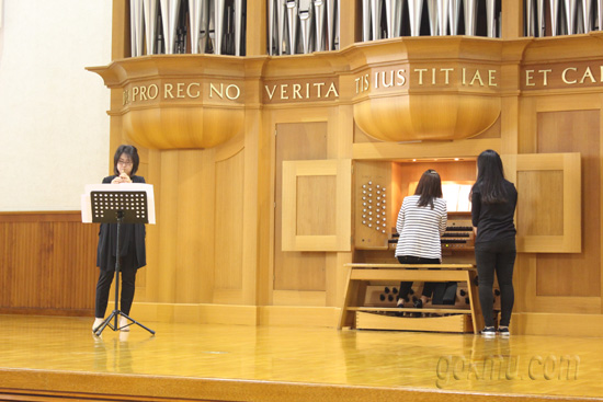 지난 23일 ‘정오 오르간 음악산책’이 아담스채플에서 열렸다. 이날 연주는 이명신 오르가니스트가 맡아 ‘Fantasia Chromatica’, ‘O Welt, ich muss dich lassen’ 등 3곡을 연주한 후, ‘Abide with me’, ‘오직 주의 사랑에 매여’ 2곡을 양윤선 피리연주가와 합주했다.
