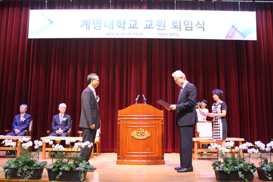 퇴임 직원 대표로 퇴임사를 맡은 손인호 선생은 “나에게 있어서 계명동산은 학문의 전당이고 삶의 터전이며 마음의 안식처였다”며 “퇴임을 하고 난 뒤 남은 세월과 시간을 투자해 계명동산을 위해 봉사하는 일을 찾아 볼 것이다”라고 말했다.