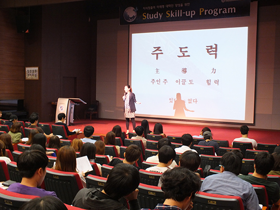 교수학습개발센터에서 주최한 ‘Study Skill-up Program Session2’ 프로그램이 지난 1일 신바우어관 3층 멀티미디어실에서 열렸다. 이번 강연은 김미란(대구 HRD교육센터·대표) 대표가 ‘주도력 : 인생역전의 Base Camp!’를 주제로 진행했다.