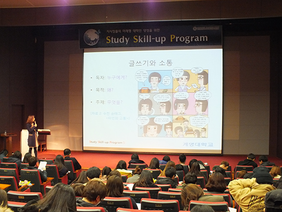 교수학습개발센터에서 주최한 ‘Study Skill-up Program Session5’ 프로그램이 지난 19일 신바우어관 3층 멀티미디어실에서 열렸다. 이번 행사 Session5는 송현주(교양교육대학) 교수가 ‘누구에게, 왜 무엇을 이야기할 것인가?’라는 주제로 강연을 맡아 진행했다.