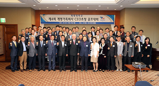 제4회 계명산학협력 포럼_지난 11월 18일 세인트웨스튼호텔 컨벤션홀에서 열린 행사에 신일희 총장, 에스엘(주) 이충곤 회장, 삼보모터스(주) 이재하 회장을 비롯한 우리학교 가족회사 대표들이 참석했다.