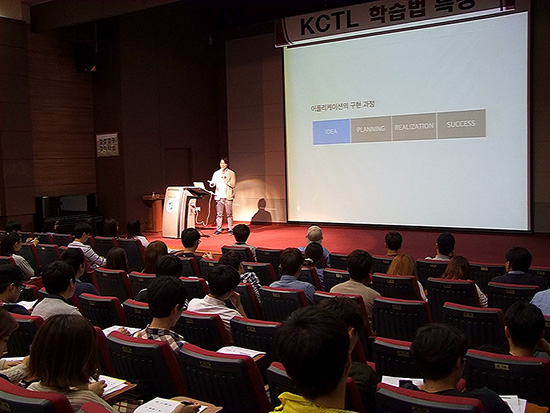 지난 4월 27일 신바우어관 3층 멀티미디어실에서 ‘명강사 초청 학습법 특강 Learning Talk!(1)’가 열렸다. 이날 특강은 이학선 캠프모바일 커뮤니케이션팀장이 ‘나도 앱이나 만들까?’를 주제로 모바일 서비스 사례를 통한 창의적 기획과 소통에 대해 강연했다.