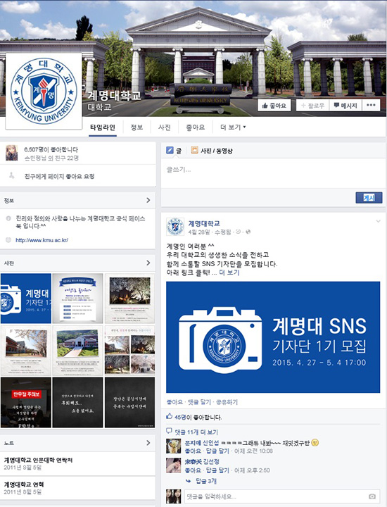 김선배(간호학·4) 씨는 “간호대는 다른 단대 건물과 멀리 떨어져 있어 학교 소식을 접하기 어려운데, 페이스북으로 다양한 학교 정보를 얻을 수 있어서 좋다. 지금 공식 계정에는 기사 위주로 글이 올라와있는데, 앞으로 학생들이 자유롭게 소통할 수 있는 글을 올려 계정을 활성화했으면 좋겠다.”라고 말했다.