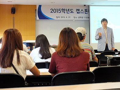 ‘2015학년도 1학기 캡스톤디자인 특허 워크숍’이 지난 8월 27일 공학관 1120호에서 개최됐다. 이번 워크숍에서는 2015학년도 1학기 캡스톤디자인 특허출원팀을 대상으로 아이디어 창출 및 특허출원 관련 특강, 팀별 발표 등이 진행됐다.