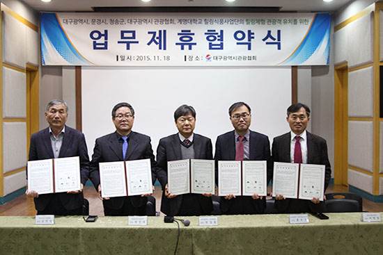우리학교 힐링식품사업단이 대구광역시 관광협회 및 대구시·문경시·청송군과 협력해 ‘웰메이드 힐링투어 프로그램’을 개발하고 이와 관련해 지난 11월 18일 ‘힐링체험관광 업무협약’을 체결했다.
