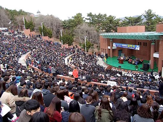 지난 2월 27일에 열린 ‘2015학년도 입학식’을 통해 신입생 5천1백23명이 우리학교의 품으로 들어왔다. 이날 입학식은 신입생 및 학부모, 재학생 등과 우리학교 신일희 총장, 이중희(회계학·교수) 교학부총장, 신진기(교통공학·교수) 경영부총장 등 관계자들이 참석한 가운데 진행됐다. 이날 김유빈(국제경영학·1) 씨와 정은주(경찰행정학·1) 씨를 비롯한 각 신입생 대표들이 선언문을 발표해 계명인으로 생활하겠다는 의지를 밝혔다.