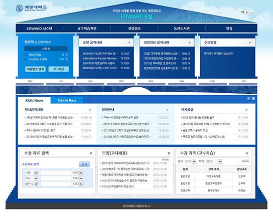 지난 10월 5일, 우리학교는 기존의 분산되어 있던 정보시스템을 하나로 통합한 에드워드 시스템(EDWARD SYSTEM)을 오픈했다. 에드워드 시스템은 우리학교의 전신인 계명기독학관을 설립한 안두화(Edward Adams)의 이름을 따 지었다. 지난 3년간 많은 계명인들이 노력해 완성한 에드워드 시스템은 교육과 학문을 중심으로 통합 시스템을 근본적으로 혁신하고자 만들어졌으며, 다양한 측면의 변화를 가져와 학생들에게 많은 편의를 주고 있다.