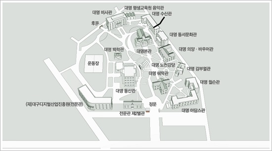 드라마와 영화 촬영지로 유명한 대명캠퍼스에는 ‘대명 쉐턱관’, ‘대명 아담스관’, ‘대명 윌슨관’, ‘대명 수산관’ 등의 미술대학이 위치해 있다.