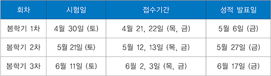 이번 학기 모의토익 시험은 4월 30일, 5월 21일, 6월 11일에 치뤄. 접수기간은 시험 전 주 목, 금요일이야. 접수는 무료 응시 대상자(국제사업센터 프로그램 수강자 등) 외에는 교내 정기모의토익 접수 사이트(http://kmu.english.co.kr)에서 할 수 있어. 시험 전 날엔 잊지 말고 국제사업센터 홈페이지(http://web.kmu.ac.kr/ fli/)에서 고사장을 미리 확인하도록 해. 시험 시간은 오전 10시부터 12시까지지만 입실시간은 9시 30분까지야. 특히 시험준비를 시작하는 9시 40분부터는 입실이 불가하니 늦지 않게 입실하도록 해. 입실하기 전에 신분증, 컴퓨터용 사인펜(검정 볼펜), 수정 테이프를 꼭 챙겨가고, 혹시 모르니 접수증도 챙겨가렴.