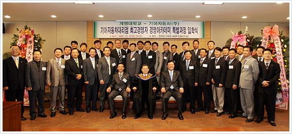 계명대 경영대학원에서는 14일(토) 오전 9시, 기아자동차와 위탁교육 협정을 체결,‘경영아카데미 위탁교육’입학식을 가지고 12월 16일까지 2개월간의 교육에 돌입했다.