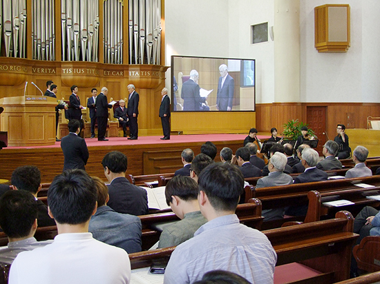 이날 신일희 총장은 “학교에 대한 수많은 교직원들의 사랑이 없었다면 오늘날의 발전 또한 없었을 것이다.”라고 감사의 말을 전했다. 이어 정순모 이사장은 “학문의 탁월성과 개척정신을 갖고 빛을 열어가길 바란다.”고 축도의 말을 전했다.