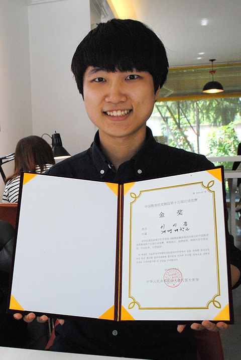 서울공자아카데미와 HSK한국 사무관이 주관하고 사단법인 한국현대중국연구회가가 주최한 ‘중국교육부상 한국 제15회 대학(원)생/고등학생 중국어대회’에서 우리학교 이시문(중국어문학·2) 씨가 금상을 받았다. 이시문 씨는 이번 대회 수상으로 한국대표 자격을 얻어 오는 7월 중국에서 열리는 ‘한어교 세계 대학생 중국어대회’에 참여해 전 세계 대표선수들과 중국어 실력을 겨루게 된다. 그를 만나 상을 받은 소감과 앞으로 참여할 세계대회에 대한 포부를 들어보았다.