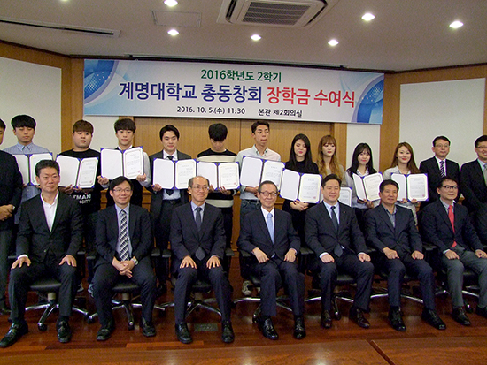 이날 이병찬 총동창회장은 장학생들에게 축하인사를 건네며 "앞으로 에너지, 결단력, 실행의지 등의 굳건한 마음가짐으로 훗날 미래사회의 주역이 되어 우리학교를 빛낼 수 있기를 바란다."라고 조언했다. 또한 김용일 학생부총장은 "우리학교를 대표하는 학생들로서 자신이 계명인이라는 것에 자부심을 갖고 살아갔으면 한다."며 "이 시점이 터닝포인트로 작용해 열정을 가지고 갈고 닦아 보석으로서 빛을 발하는 생명양식이 되길 바란다."고 축사했다.