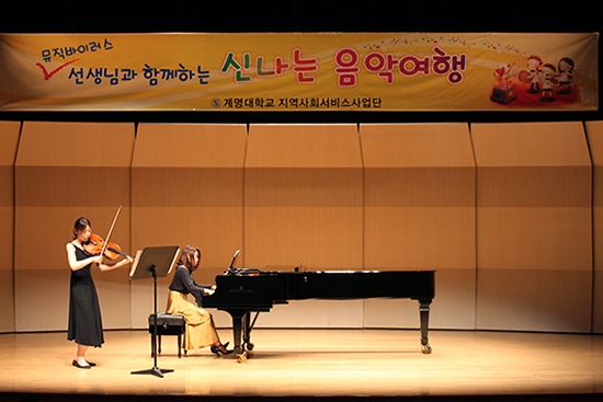 지난 8일 해담콘서트홀에서 우리학교 지역사회서비스사업단이 주최한 ‘뮤직바이러스 선생님과 함께하는 신나는 음악여행’ 행사가 열렸다.