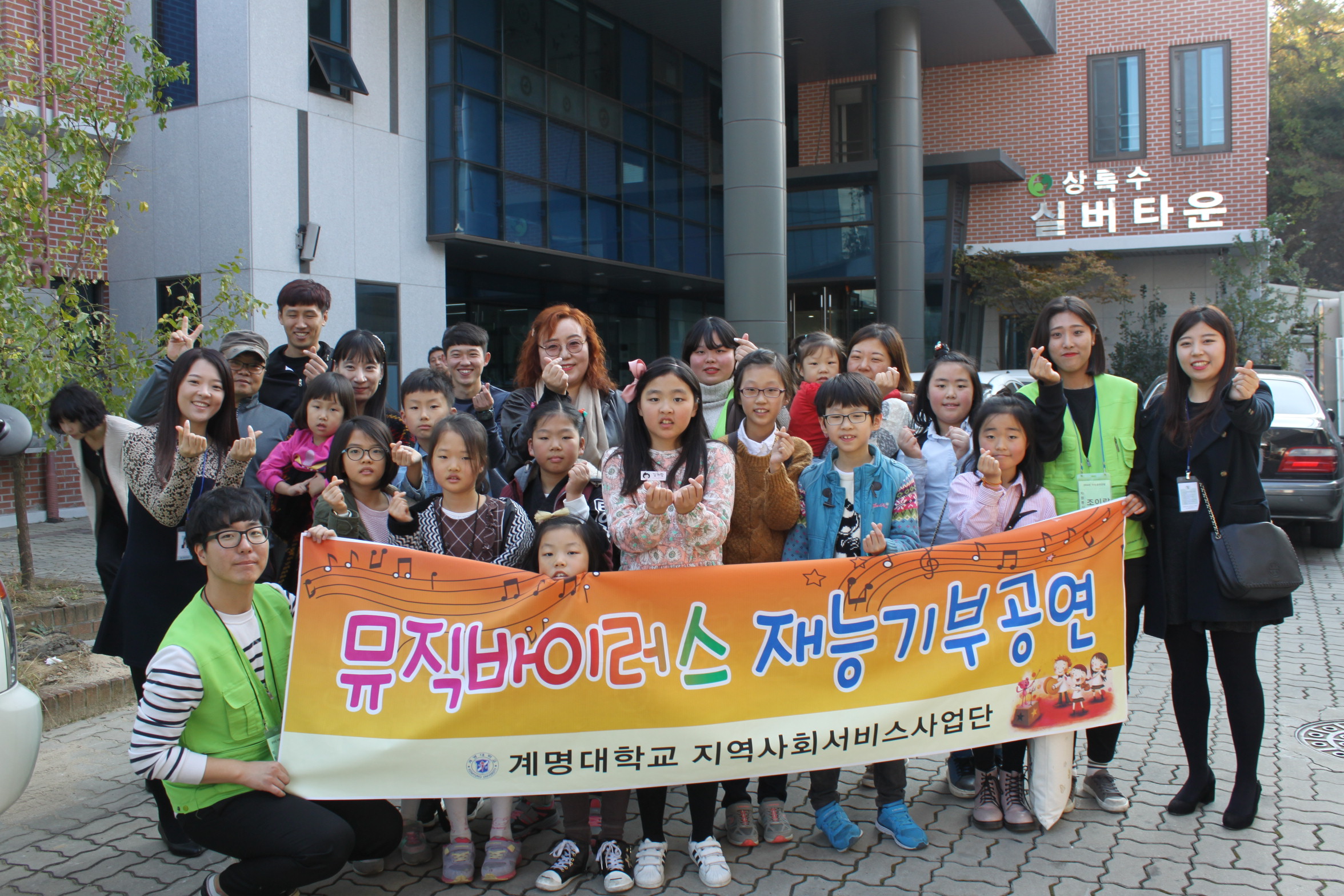 지난 5일, 우리학교 지역사회서비스사업단 아동정서발달 및 치유지원서비스의 수혜아동 30여명이 사회복지시설 상록수실버타운 어르신 50여명을 대상으로 ‘제6회 재능기부공연’을 실시했다. 이날 공연은 참여아동들의 피아노, 태권도, 댄스 등의 무대로 진행되었으며, 우리학교 사회복지학과 학생들이 자원봉사자로 참여해 아동들의 재능기부활동을 적극 지원했다.