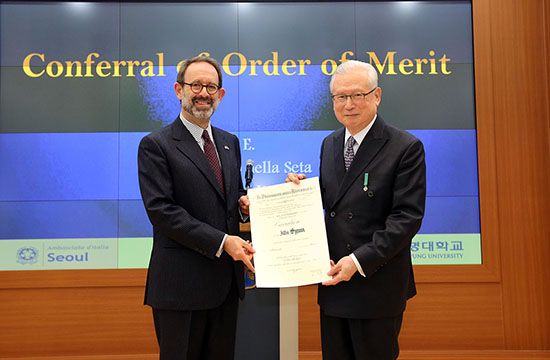 신일희 총장은 “이번에 이탈리아 공화국 공로훈장을 받은 것은 큰 영광이고 기쁘게 생각한다.”라며 “이탈리아를 소중한 친구로 여기고 양국 간의 우호증진과 교류에 더욱 힘쓰도록 노력하겠다.”라고 소감을 밝혔다.