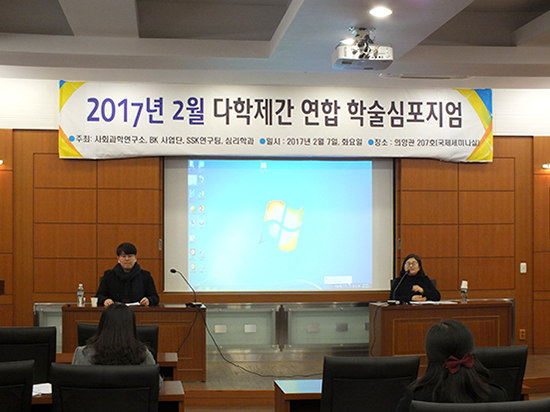 지난 2월 7일 사회과학연구소, BK21플러스사업단, SSK연구팀, 심리학과가 공동 주최한 ‘2017년 2월 다학제간 학술심포지엄’이 의양관 국제세미나실에서 열렸다. 행사는 심상민(심리학·박사과정) 씨 등 총 네 명의 주제 발표 및 종합토론으로 진행됐다. 지은구(사회복지학·교수) 사회과학연구소장은 “참여 학자들의 연구역량 강화에 이번 심포지엄이 도움이 되길 바란다.”고 말했다.