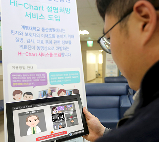 지난 7일, 동산병원이 ‘하이차트 애니메이션 설명처방서비스’를 확대 시행했다. 본 서비스는 각종 의료정보를 애니메이션 영상으로 제작해 환자에게 제공하는 것이다. 동산병원은 작년 7월부터 서비스를 시행해왔으며, 이용자들의 만족도가 높아짐에 따라 서비스 확대를 결정했다. 확대시행 전에는 진료 후 영상을 제공했다면, 확대시행 이후에는 사전에 제공함으로써 환자들을 위한 서비스가 향상될 전망이다.