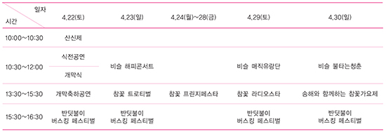 ● 축제 시기 : 4월 22일 (토) ~ 30일 (일) 9일간 개최