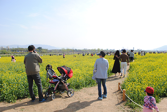 바람이 불면 술렁이는 노란 유채꽃 밭을 따라 관광객들의 웃음 또한 노랗게 물든 듯하다. 유채꽃의 아름다움을 사진에 담으려 연신 셔터를 누르는 모습이 많이 보인다. 금호강변에 위치한 하중도 유채꽃 단지는 유채꽃뿐만 아니라 청보리 밭도 함께 조성해 시민들에게 개방하고 있다. 올해는 개방된 8일부터 유채꽃을 보며 봄의 정취를 느끼려는 시민들로 북적이며 대구의 꽃놀이 명소로 자리매김하고 있다.