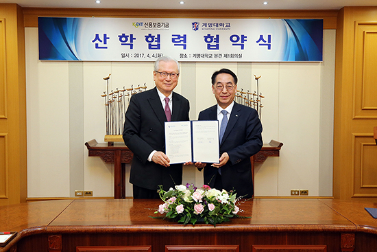 우리학교와 신용보증기금이 지난 4일 본관 제1회의실에서 우리학교 신일희 총장, 황록 신용보증기금 이사장을 비롯한 관계자 20여명이 참석한 가운데 산학협력 협약을 체결했다. 앞으로 양 기관은 전문 인력 교류 및 인재 양성을 위한 상호 지원, 산·학·연 공동연구 및 프로그램 개발 등을 진행할 예정이다. 황록 이사장은 “산학협력을 통한 일자리 창출에 일조하도록 노력 하겠다.”고 전했다.