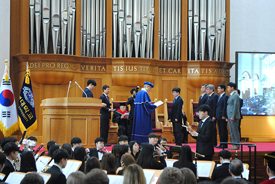 지난 19일 아담스채플 대예배실에서 ‘계명대학교 창립 118주년 기념식’이 열렸다. 이날 기념식에는 우리학교 창립 118주년을 축하해주기 위해 자리한 호오샹 탈레비(Hooshang Talebi·이란 이스파한대학) 총장과 파베우 구스날 (Paweł Gusnar·폴란드 쇼팽음악대학) 부총장 등 많은 귀빈들과 우리학교 교직원들이 참석했다. 김남영(경영학·교수) 총무처장의 사회로 정순모 이사장의 계명금장 수여, 신일희 총장의 교직원 포상 및 기념사 등이 있었다.